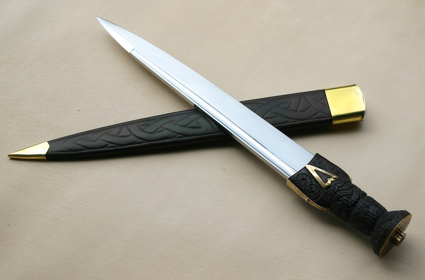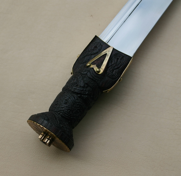 hand carved Oak grip with brass heart and haunch guard,rivetted.