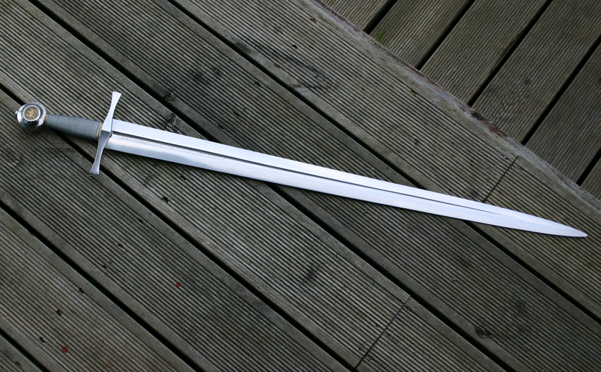 This is the Archetypal medieval Knights sword,a 32” tapered blade with narrow fuller, cruciform crossguard and wheel pommel.