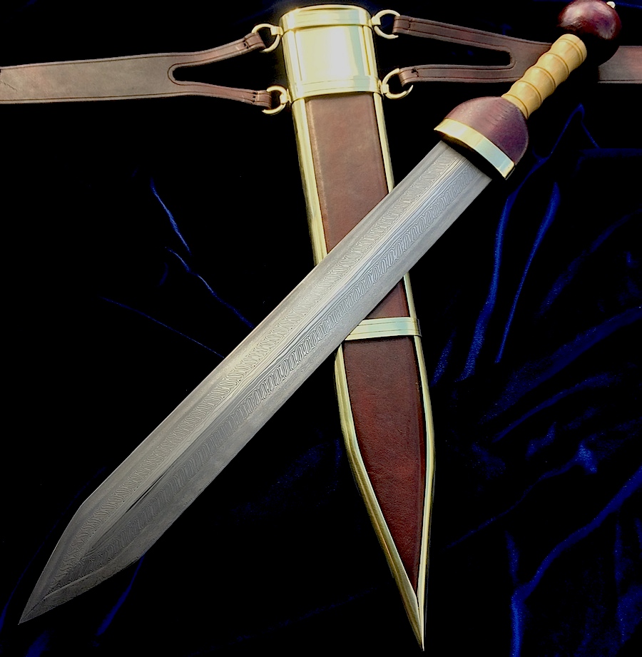 the example pictured here has a fine pattern welded blade,this version would cost around £2800,in forged carbon steel the same set would cost around £1600