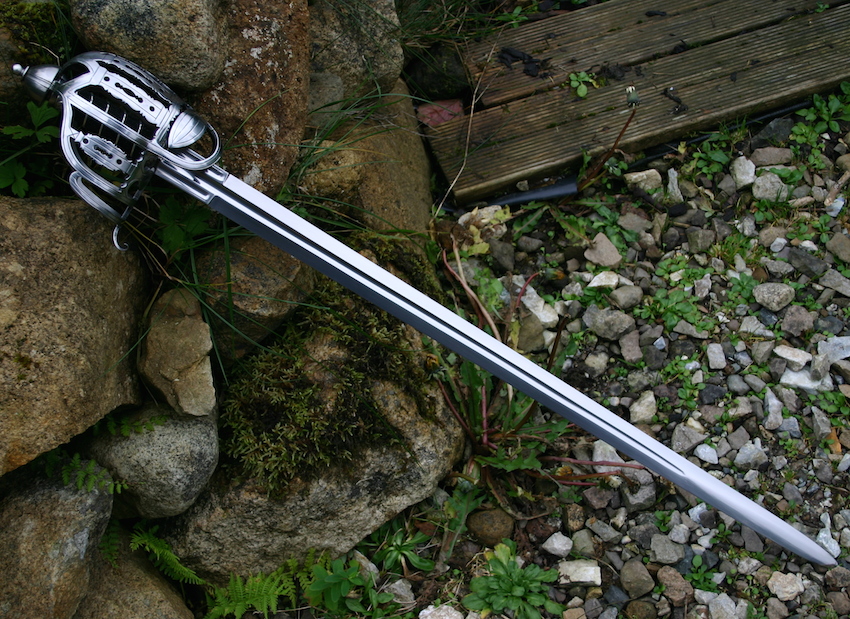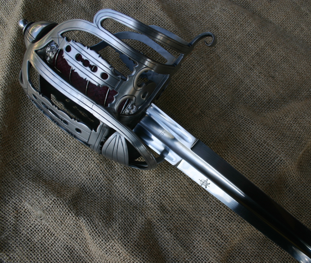 This sword is based on an original owned by James Stewart of Balquhidder and is finished with a rayskin or fish skin grip and silver wire. The blade is incised and fullered and can be etched to request.
