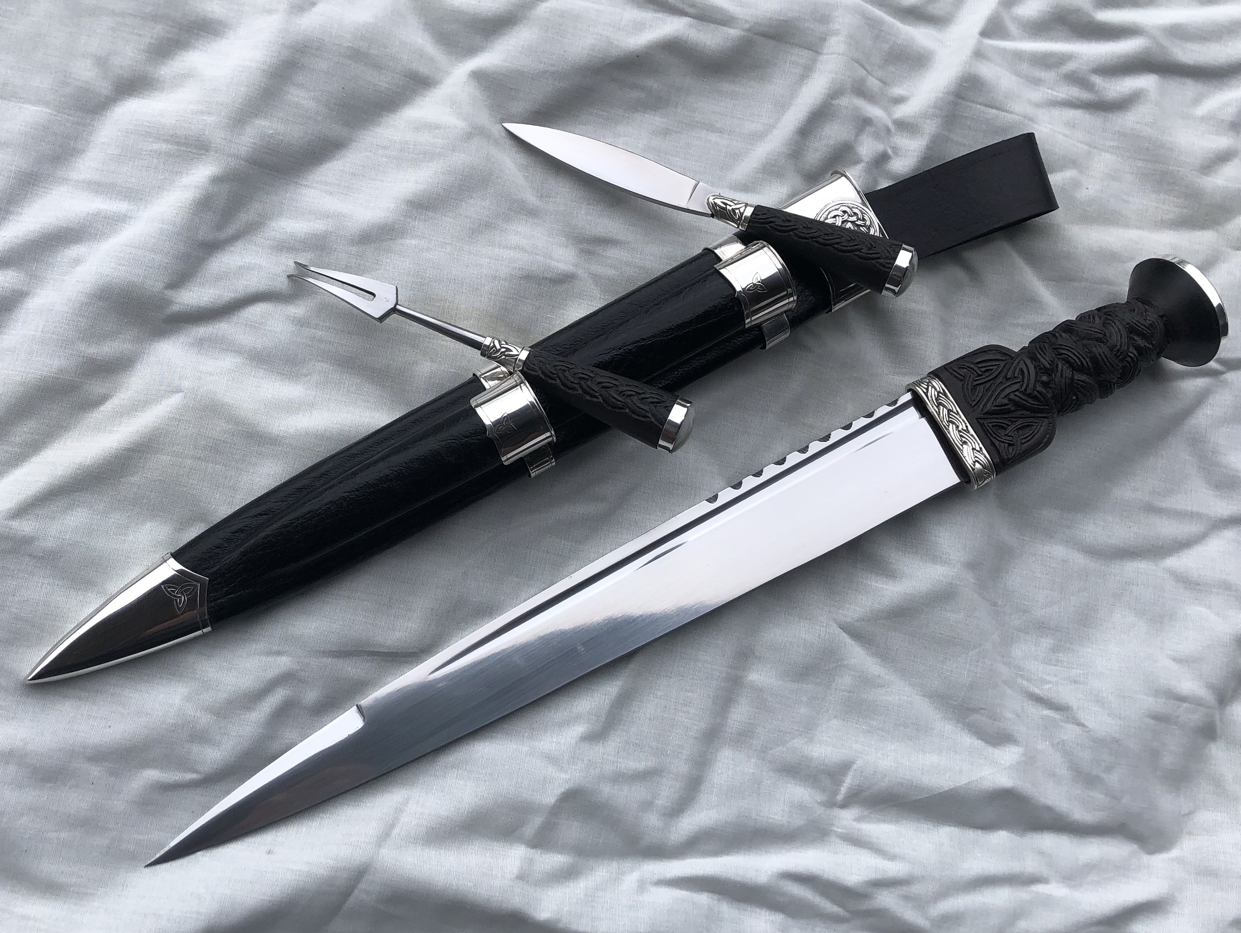 This is my take on the classic Regimental Dirk,with an 18th Century style blade and finish,knife and fork also.